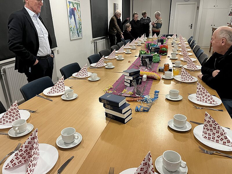 Der blev også tid til fødselsdagssang for Bjarne, som i denne anledning gav kage til kaffen.