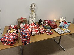 Istedet for traditionel pakkespil havde vi ståbanko med gevinster købt af festudvalget.