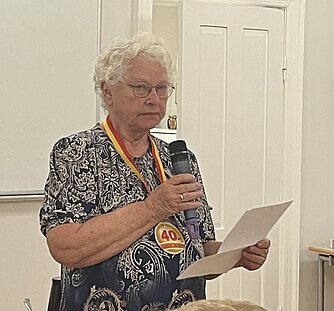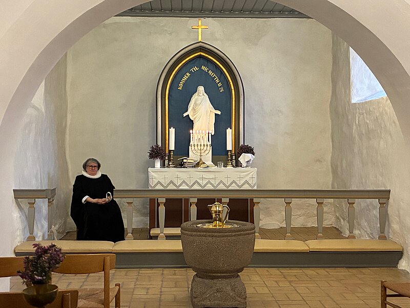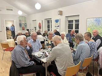 Her blev vi mødt af Lars Juul-Madsen, der fortalte om kirken og nærområdet og til slut om på regionsprojektet i 2024/205 “Fredens Hus - væksthus for dialog og demokratisk dannelse”. En spændende eftermiddag, der sluttede med kaffe lavet af Livsværkstederne - en cafe og værested drevet af KFUM's sociale arbejde.
