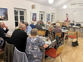 Kl. 19 mødtes vi i Sognegården til en dejlig aften med spisning, sang og masser af snak.