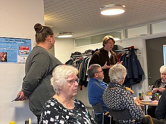 Susanne Molbæk leder af Den Blå Paraply fortalte om arbejdet i cafeen. I huset har de også genbrugsbutik, lokaler til aktiviteter, mulighed for at give rådgivning og vejledning i både økonomiske og praktiske forhold til gæsterne. De har i gennemsnit 44 gæster i cafeen, hvoraf ca. de 30 er spisende gæster.