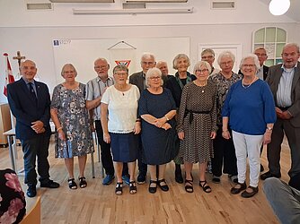 16 Y's Men havde fundet vej til Udby Kirke til gudstjeneste kl. 11.00 med Jan Schmidt som præst.