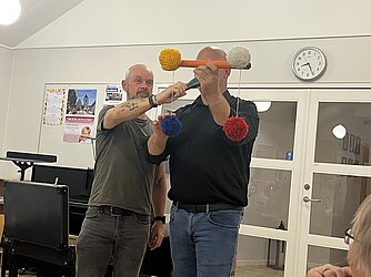 I år er regionsprojektet 2023-2024 ”ENSOMHED og FÆLLESSKAB” blandt børn og unge, og vi havde derfor besøg af viceforstander for Julemærkehjemmet Hobro Lene Gamrath (th.) samt opfølgningskoordinator Bente Kokholm, hvis hovedopgave er at støtte børnene og deres familier med at finde tilbage i dagligdagen efter opholdet.