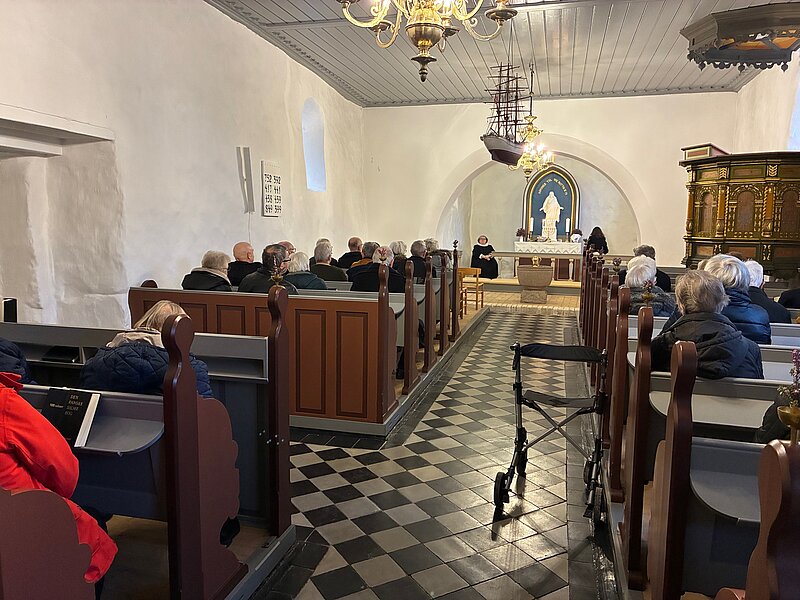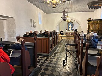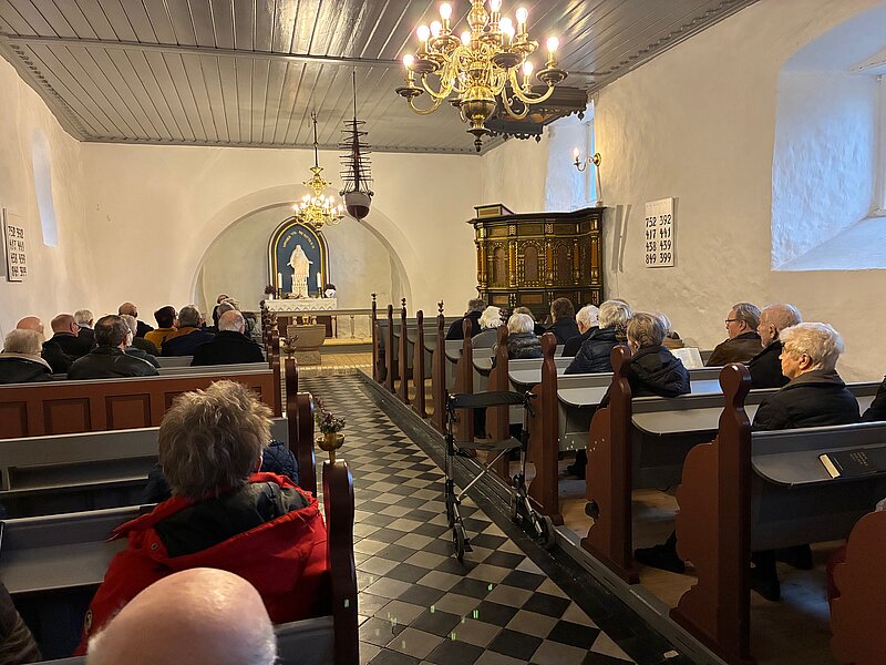 Vi startede med gudstjeneste i Hemmed Kirke, hvor sognepræst Sigrid Marcussen holdt en god gudstjeneste i en fyldt kirke.