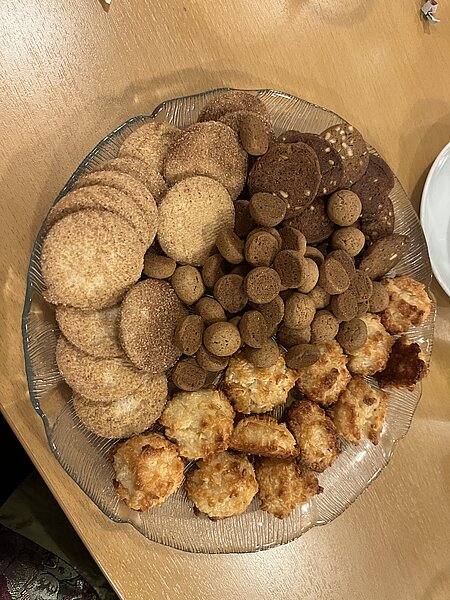I løbet af aftenen var der pakkespil, Elisabeth læste julehistorie, der blev snakket, spist slik og drukket kaffe og vi fik lækre julesmåkager som Anna og Leo havde bagt.